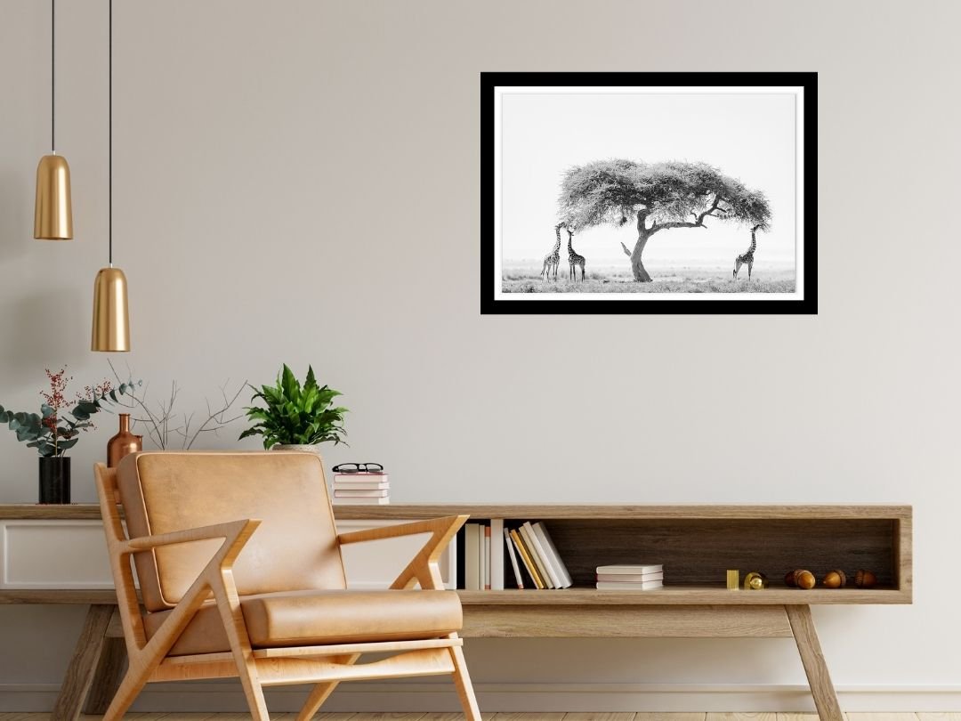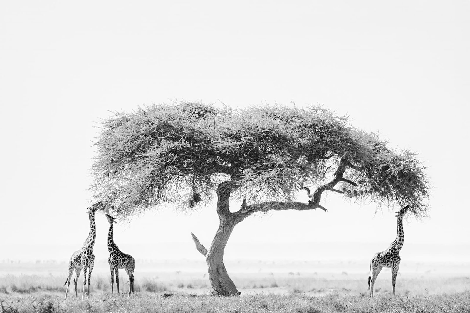 Beneath a vast canopy of dramatic, cloud-laden skies, a tiger prowls with measured grace. This fine art photograph captures the sheer majesty of the big cat in monochrome, emphasizing texture and contrast.