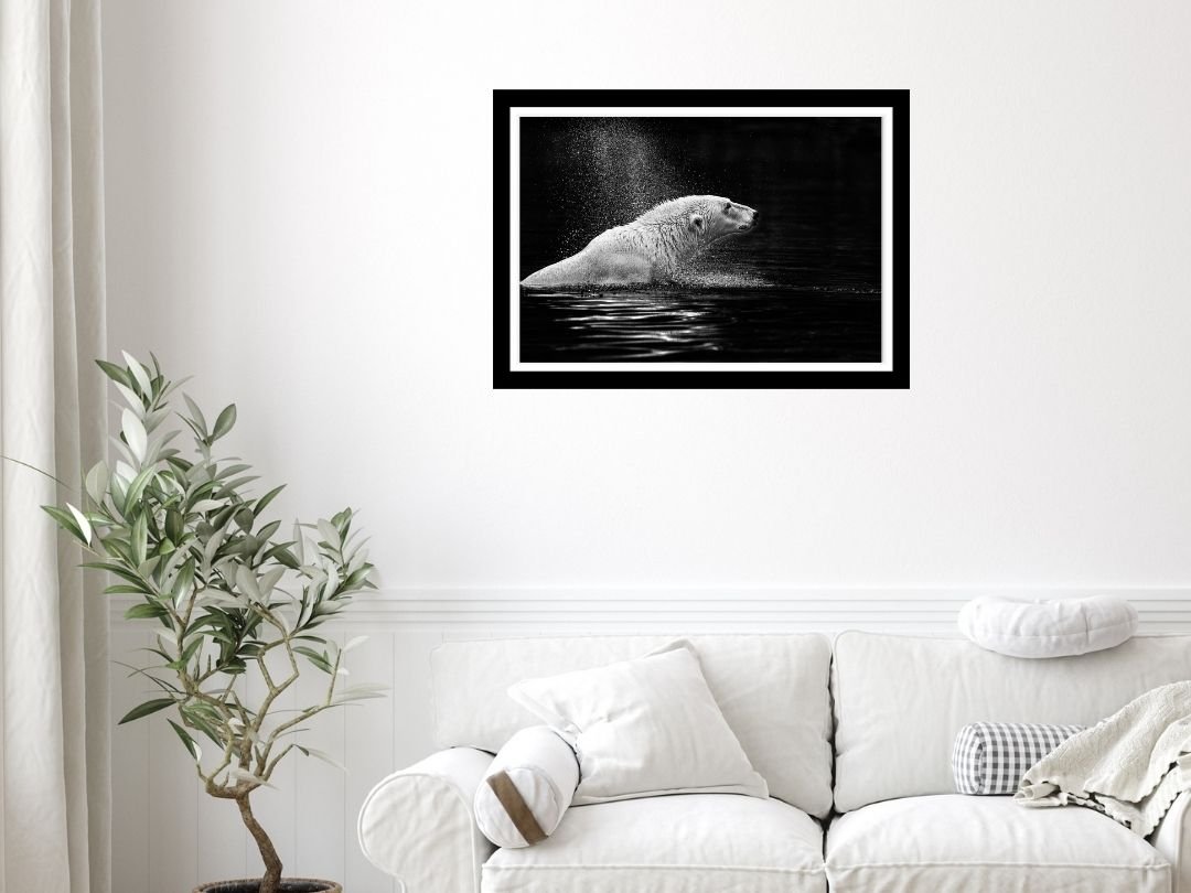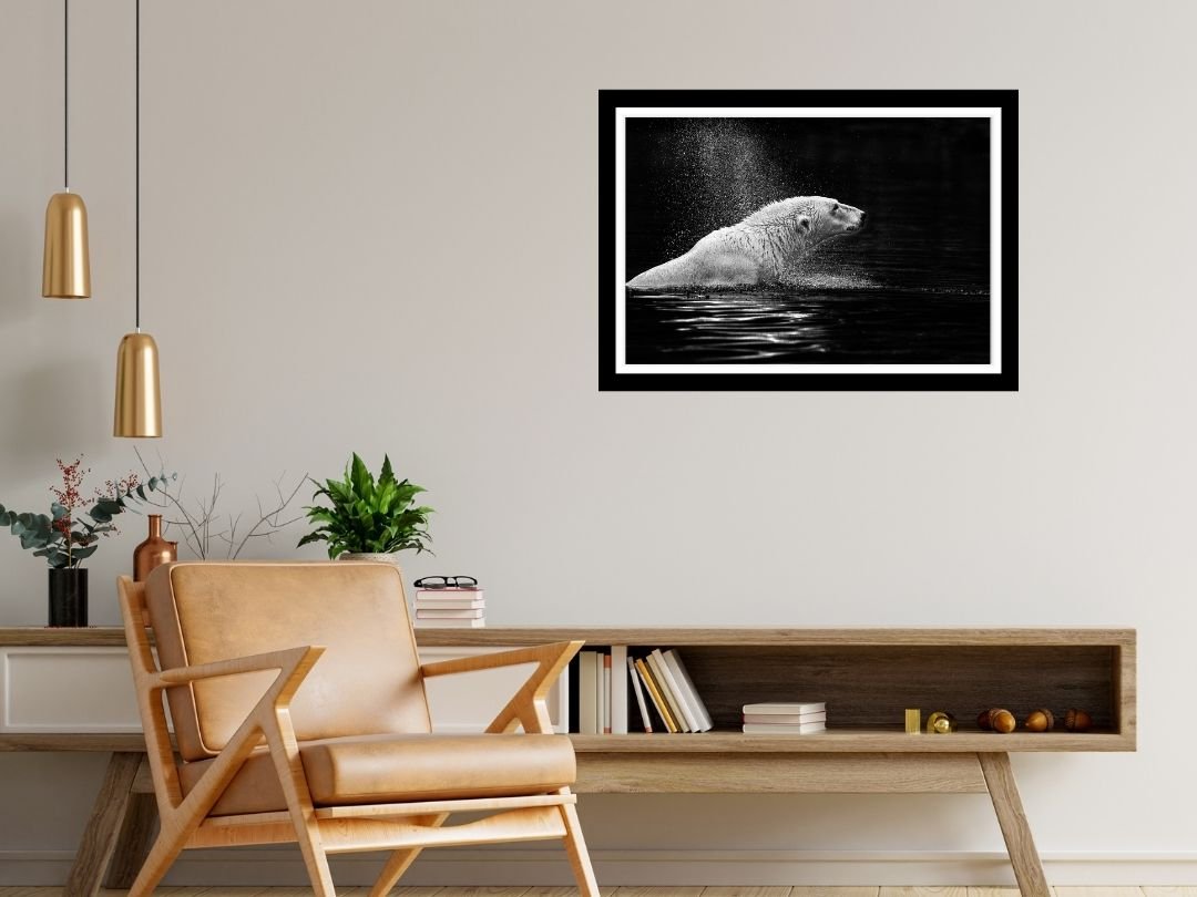 Beneath a vast canopy of dramatic, cloud-laden skies, a tiger prowls with measured grace. This fine art photograph captures the sheer majesty of the big cat in monochrome, emphasizing texture and contrast.