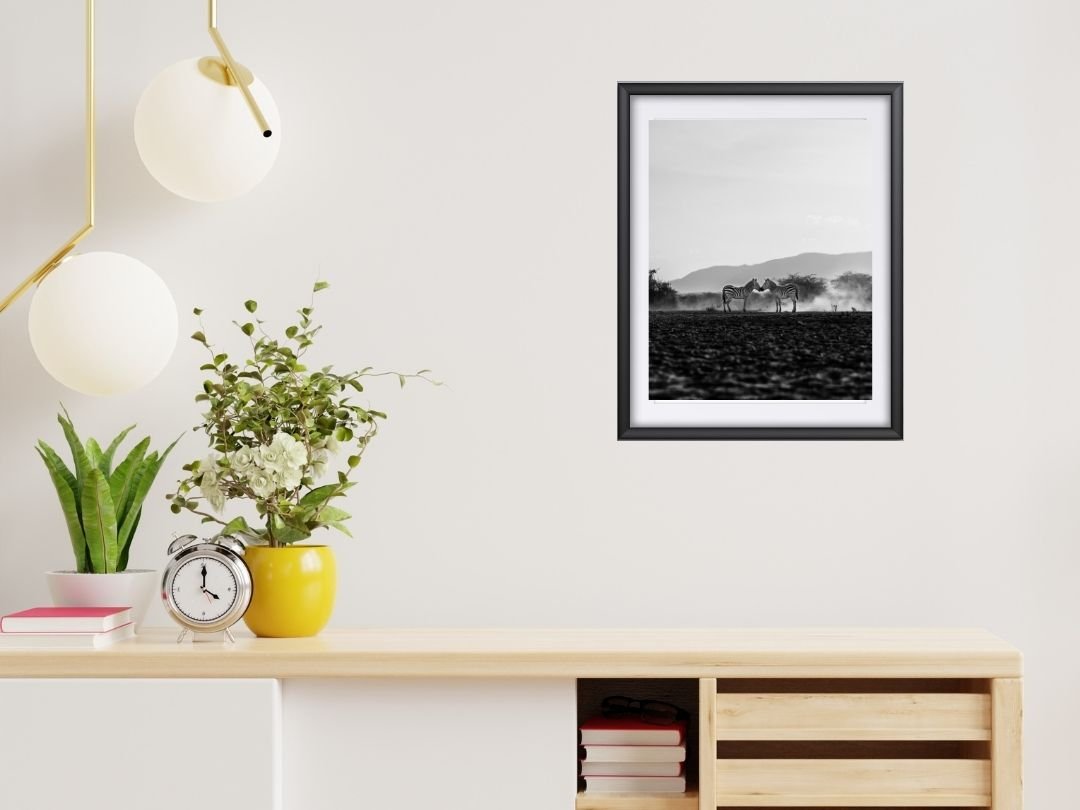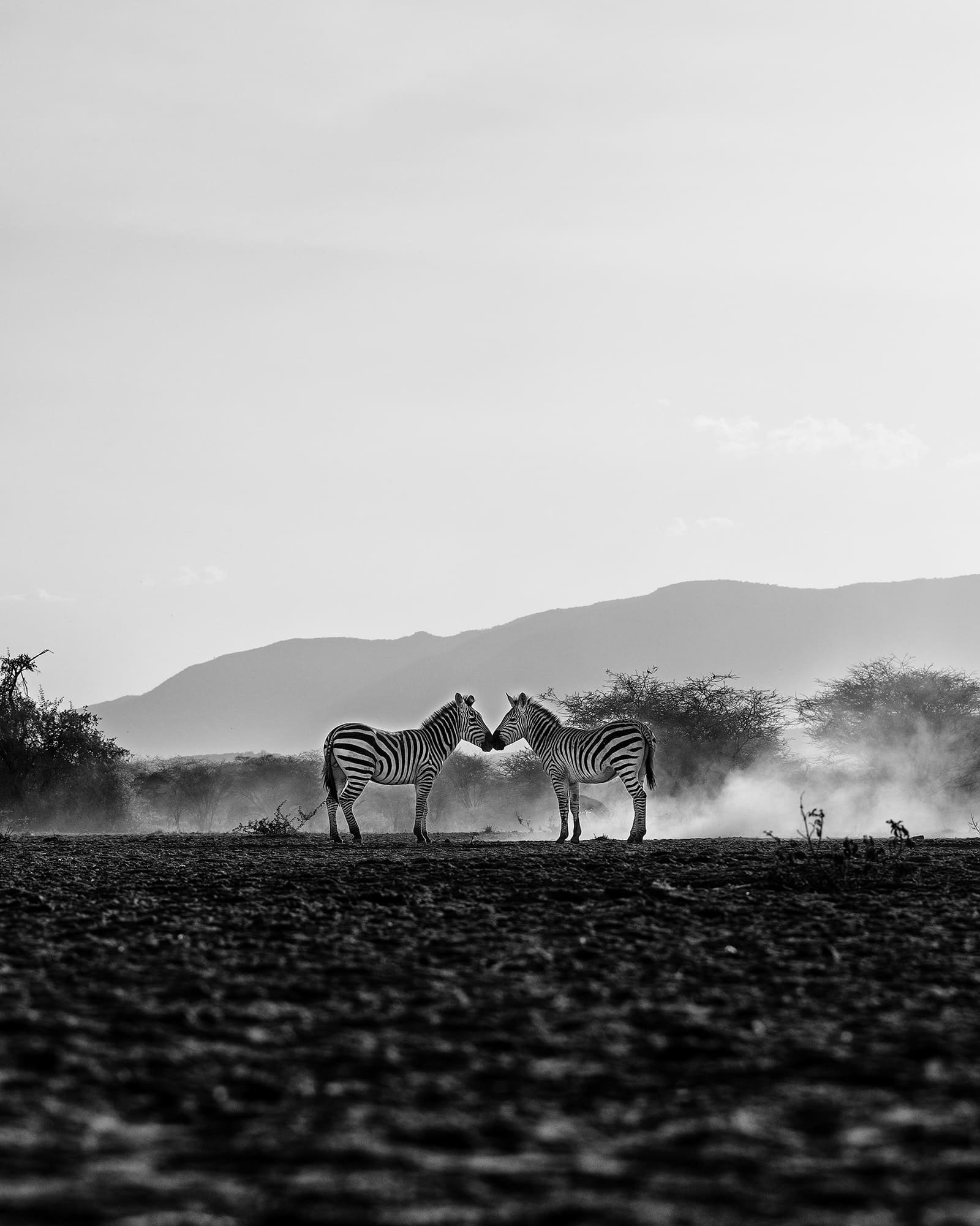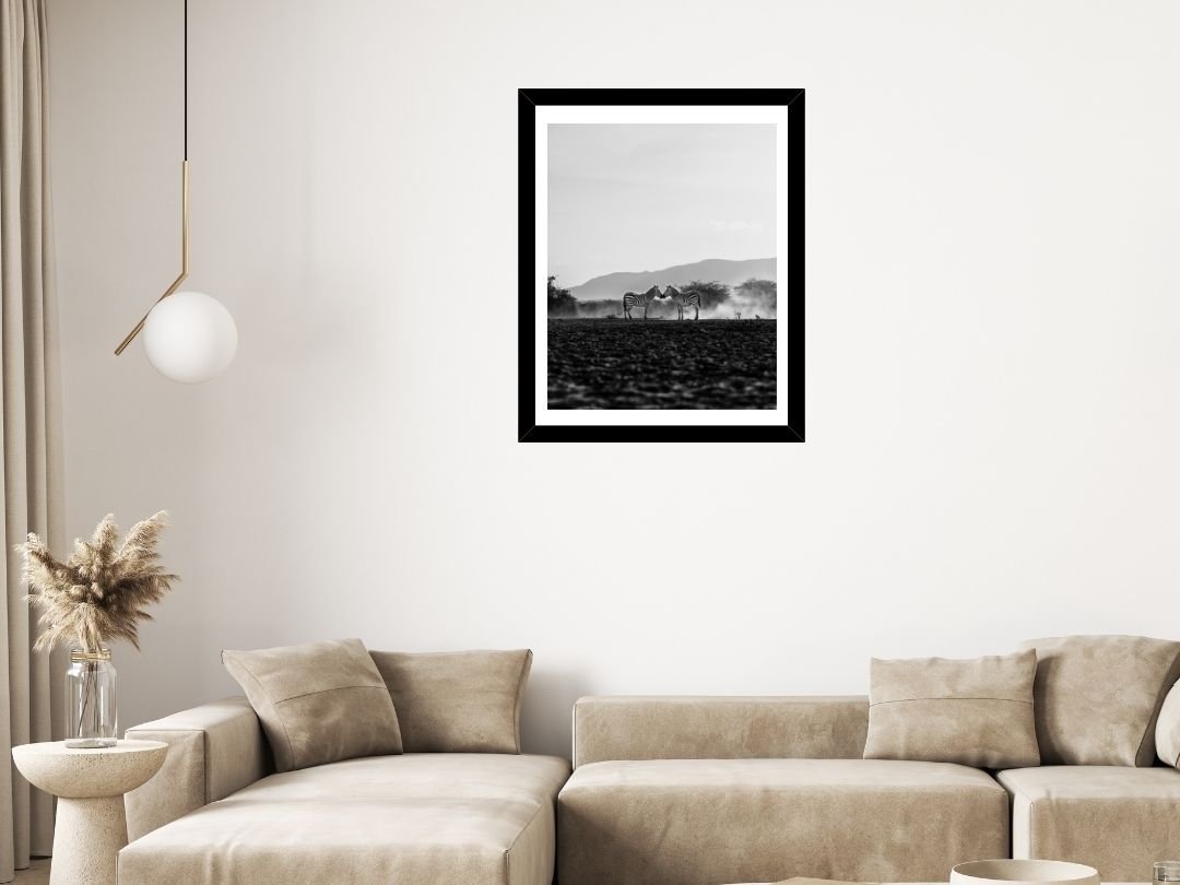Beneath a vast canopy of dramatic, cloud-laden skies, a tiger prowls with measured grace. This fine art photograph captures the sheer majesty of the big cat in monochrome, emphasizing texture and contrast.