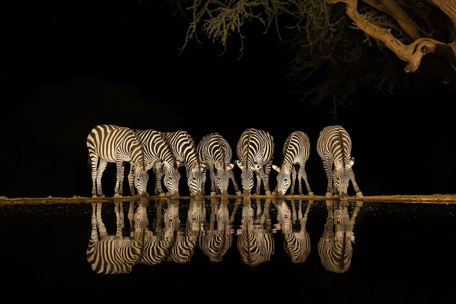 Beneath a vast canopy of dramatic, cloud-laden skies, a tiger prowls with measured grace. This fine art photograph captures the sheer majesty of the big cat in monochrome, emphasizing texture and contrast.