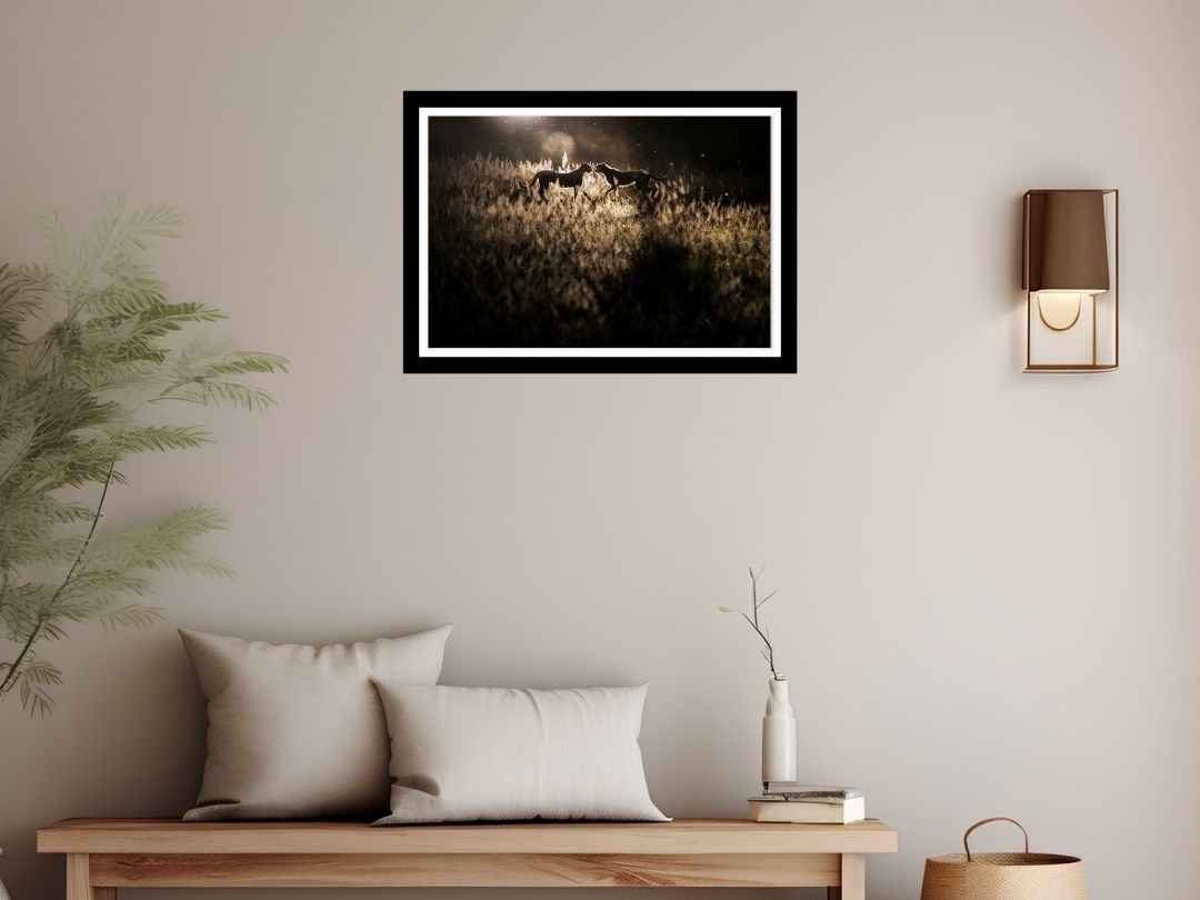 Beneath a vast canopy of dramatic, cloud-laden skies, a tiger prowls with measured grace. This fine art photograph captures the sheer majesty of the big cat in monochrome, emphasizing texture and contrast.