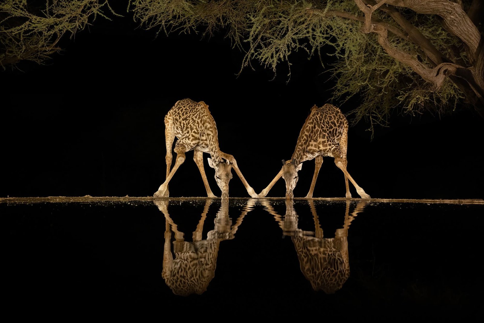 Beneath a vast canopy of dramatic, cloud-laden skies, a tiger prowls with measured grace. This fine art photograph captures the sheer majesty of the big cat in monochrome, emphasizing texture and contrast.