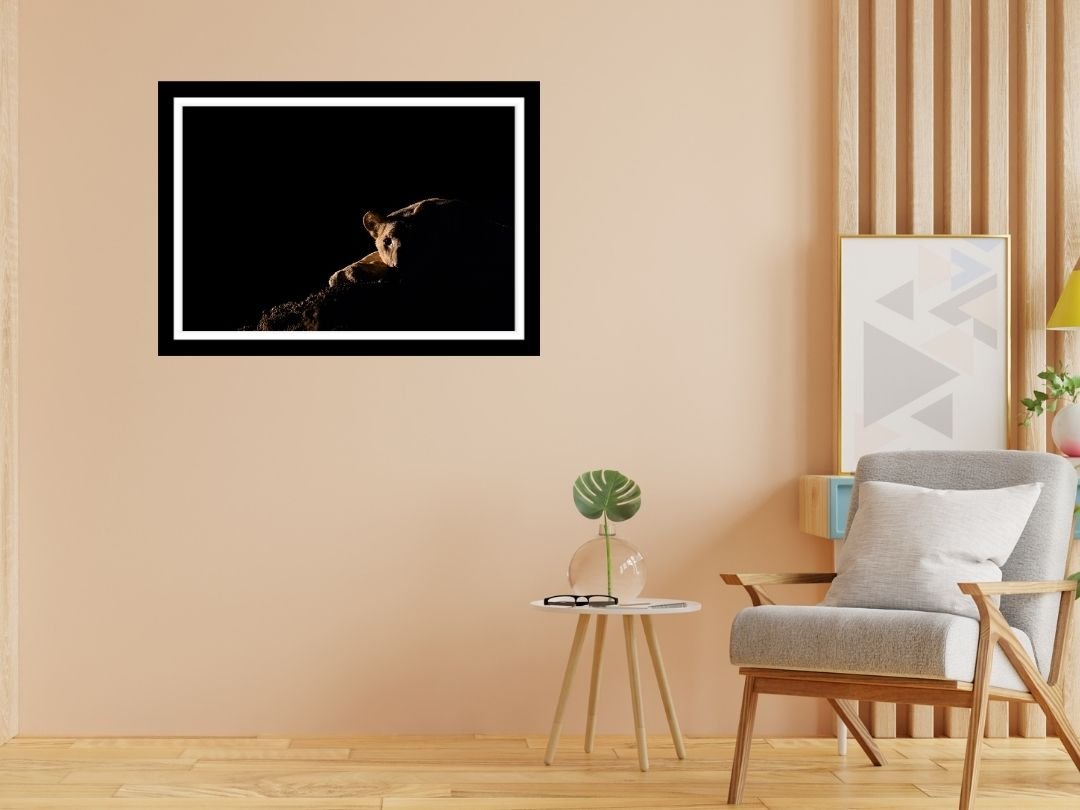 Beneath a vast canopy of dramatic, cloud-laden skies, a tiger prowls with measured grace. This fine art photograph captures the sheer majesty of the big cat in monochrome, emphasizing texture and contrast.