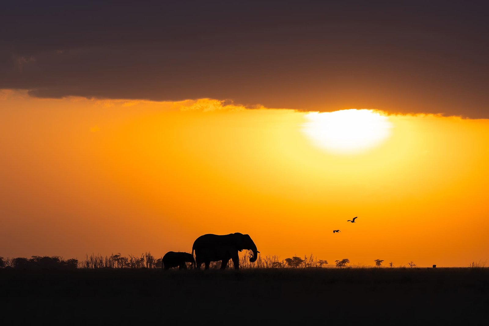 Beneath a vast canopy of dramatic, cloud-laden skies, a tiger prowls with measured grace. This fine art photograph captures the sheer majesty of the big cat in monochrome, emphasizing texture and contrast.