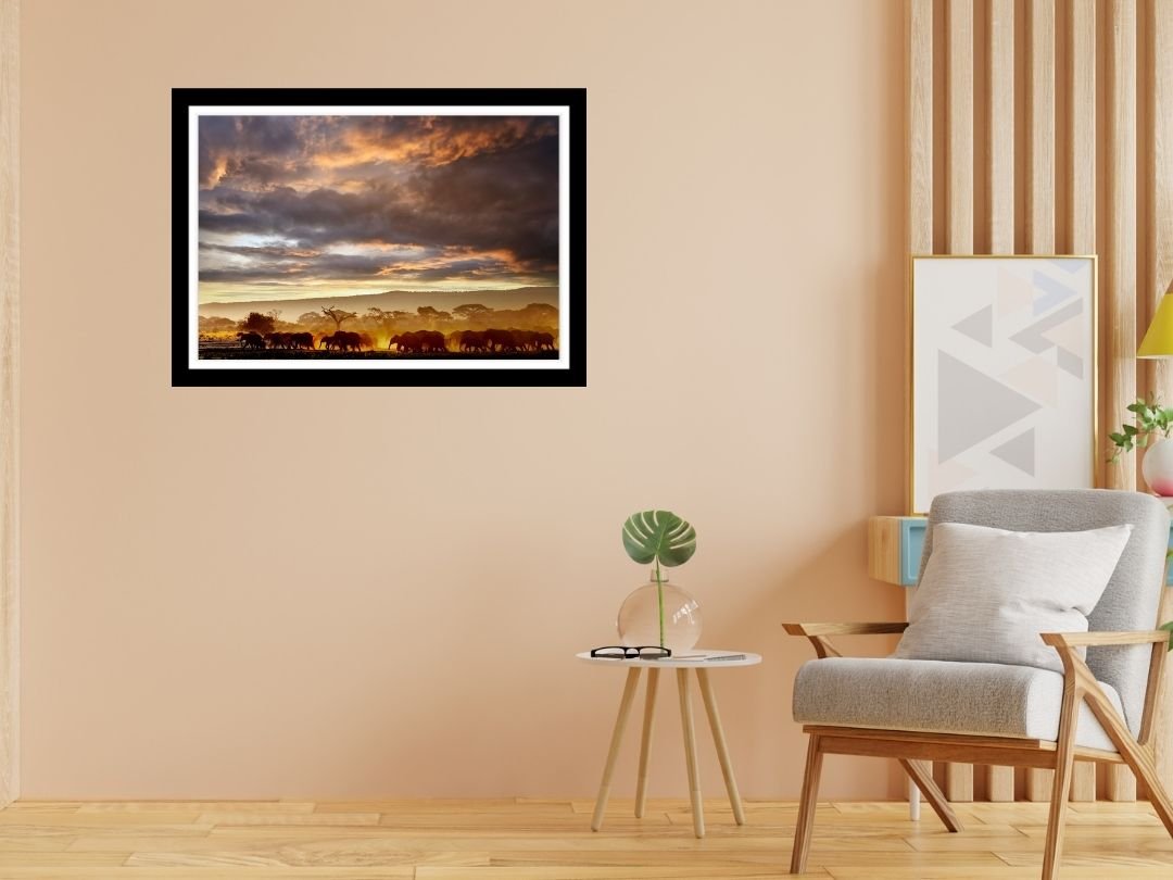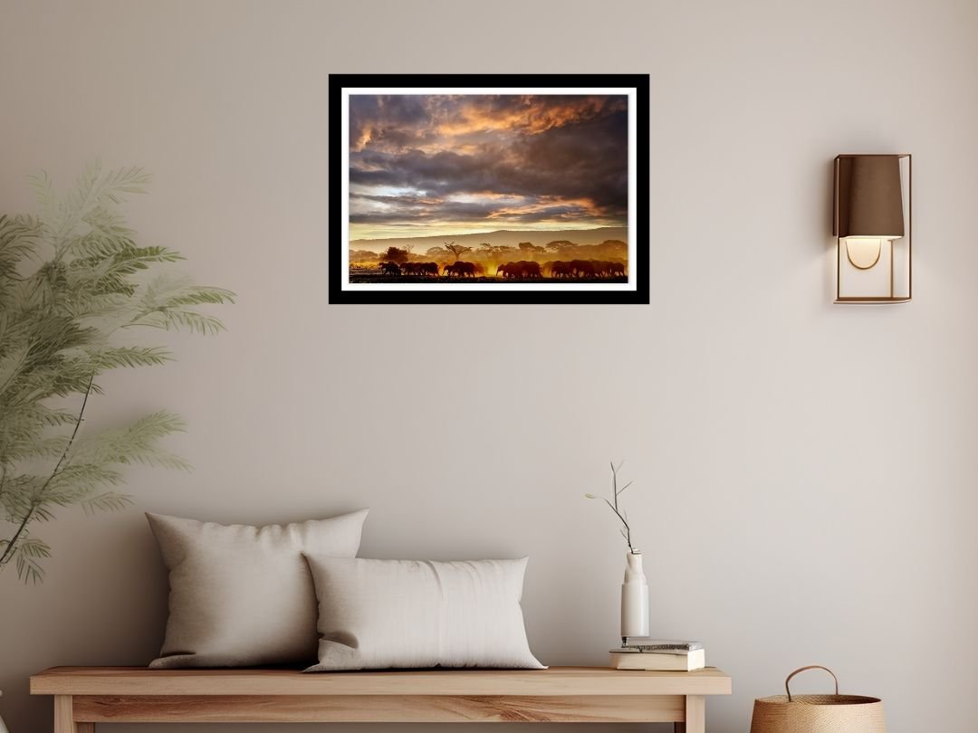 Beneath a vast canopy of dramatic, cloud-laden skies, a tiger prowls with measured grace. This fine art photograph captures the sheer majesty of the big cat in monochrome, emphasizing texture and contrast.